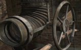 Now go back to the door of the boiler, enter and pop down the pipe in the middle. Follow the tunnel to the end- and daylight! Now follow the path around to the left, Climb over the railing and open the hatch in the floor- don't go through it yet- it comes in handy later. Go through the double doors and play with the contraption at the end - its a rodent trap! Play with this for a while .. then get stuck at the first tough part of the game.